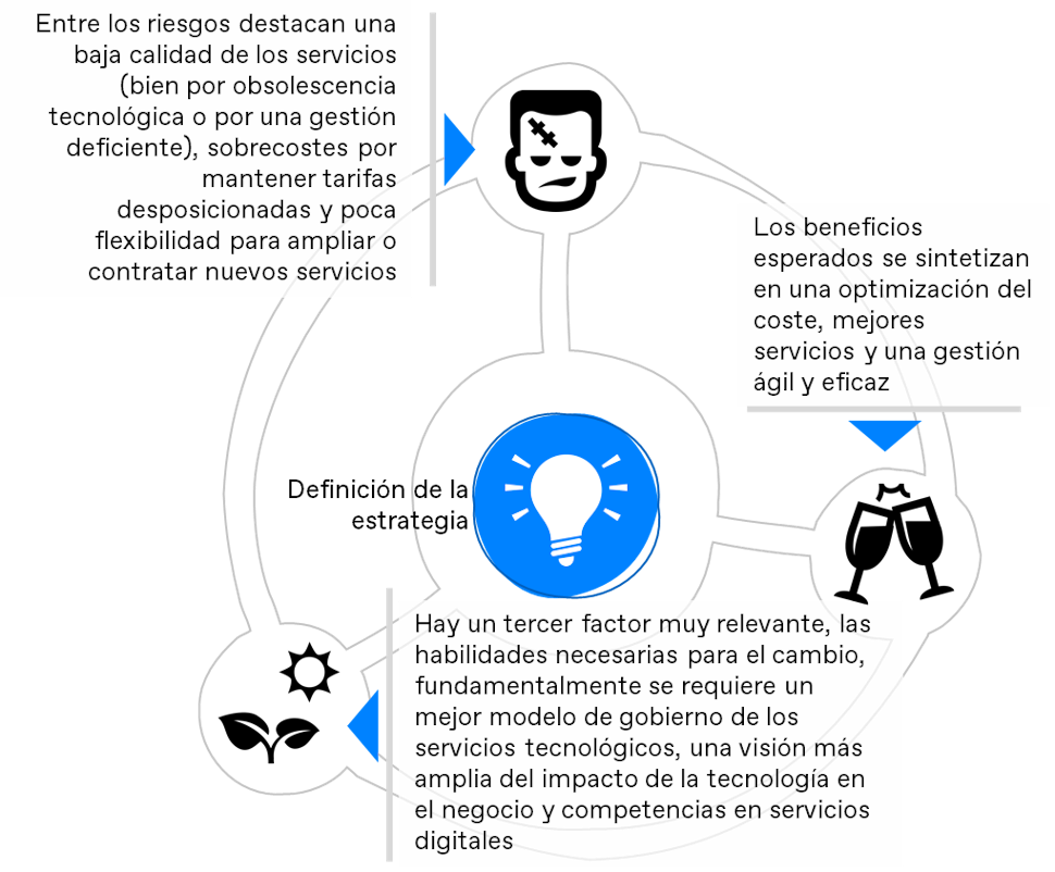 No obstant això, aquest procés és una oportunitat apassionant per dotar-nos de nous serveis que impulsen el negoci, generar estalvis o establir un model de relació col·laboratiu i transparent en què el proveïdor deixa de ser-ho per convertir-se en un autèntic partner tecnològic.
