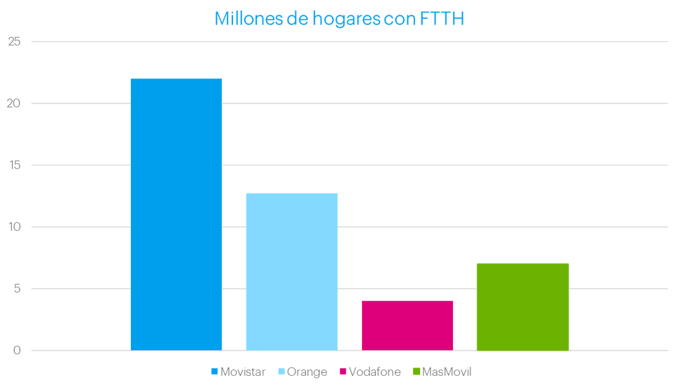 Tant és així, que segons el Consell Europeu d’FTTH, Espanya és el país europeu amb la taxa més gran de penetració, amb més d’un 44% de llars connectades. Si traduïm aquest percentatge a habitatges dotats amb fibra dins la llar, estem parlant de més de 22 milions de domicilis amb cobertura.